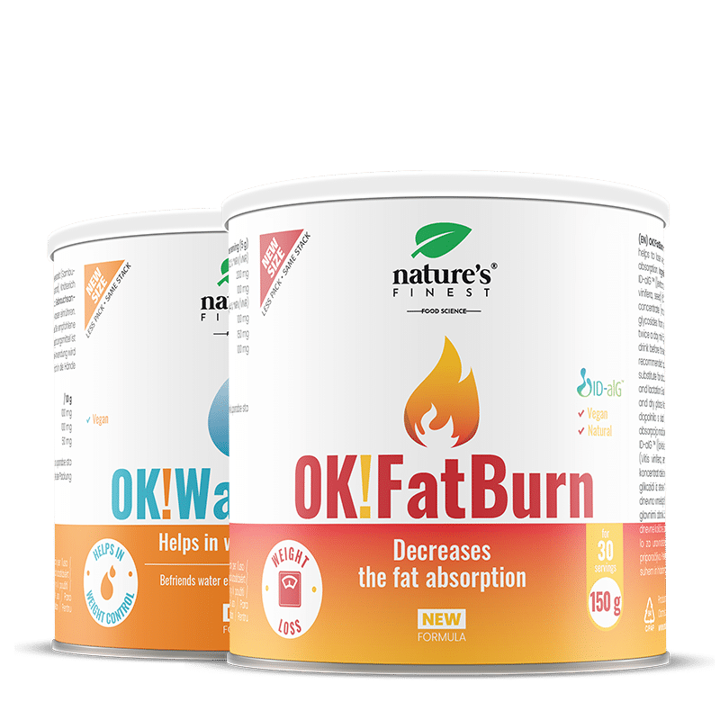 OK!FatBurn with the active ingredient ID-alG™ is clinically proven to help lose body fat, OK!WaterOut accelerates the elimination of excess water from the body and helps to eliminate excess pounds.